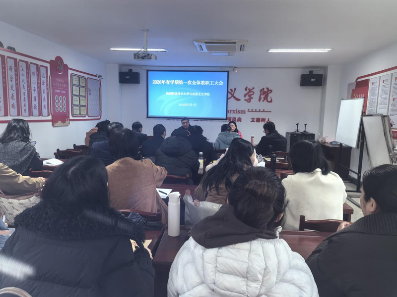 副院长李岩传达了学校新学期教学工作会议精神,强调要严明工作纪律,筑牢质量底线。要求全体教职工严格遵守课堂教学规范,按时到岗履职;在课堂教学中,严格落实相关管理规定,规范教学行为,关注学生出勤与听课状态,坚守思政课堂育人主阵地,以严谨的教风和良好的学风,保障新学期主校区和高邮湖校区教学工作有序高效开展。